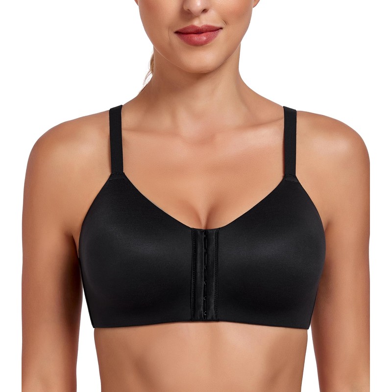 Lemorosy Women's Bra Without Underwire Front Closure Large Sizes Strong Hold Unpadded Full Cups Comfortable Classic Bra, black, 70D
