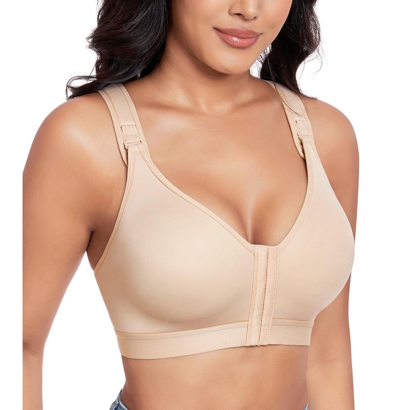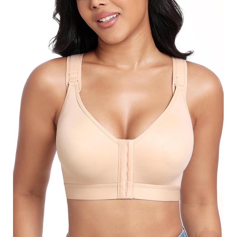 Lemorosy Women's Bra, Without Underwire, Strong Hold, Front Closure, Racerback, Post-Operative Sports, Adjustable Bra, beige, 75 D