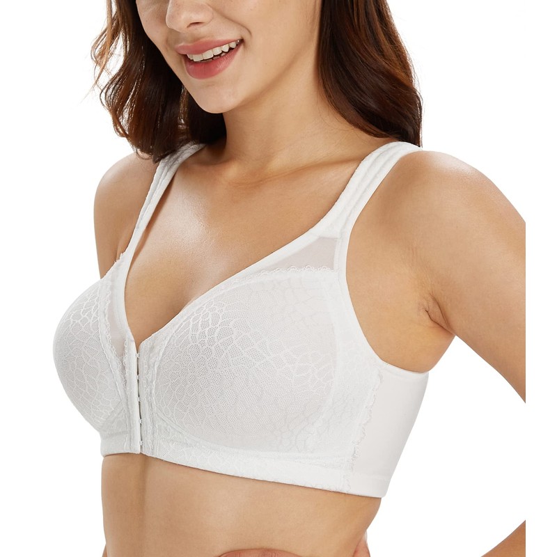 Lemorosy Women's Comfort Strong Hold Front Closure Back Support Unpadded Without Underwire Classic Bra, White, 85C