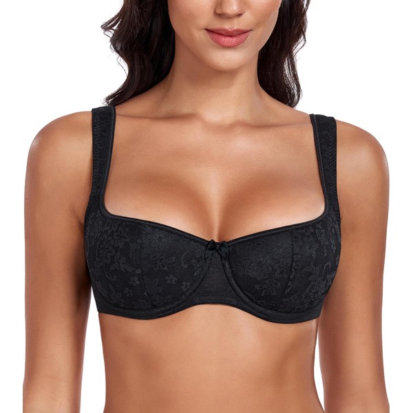 Lemorosy Women's Dirndl Bra Push Up Balconette Bra with Underwire Half Cup with Padded Straps, Black Floral Pattern, 80F