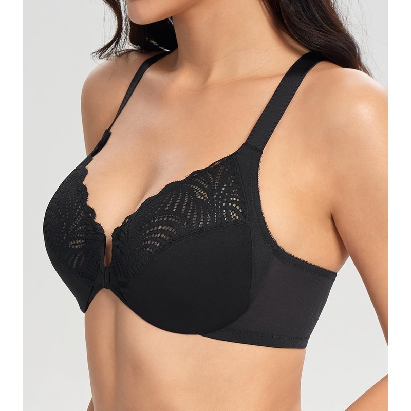 Lemorosy Women’s Full Figure Plus Size Unpadded Front Closure Lace Racerback Underwire Everyday Bra (40C, Black)
