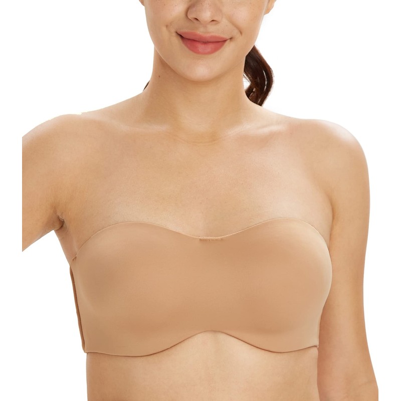 Lemorosy Women's Smooth Seamless Strapless Bandeau Non Padded Underwire Minimizer Support Bras(40DDD, Pecan)