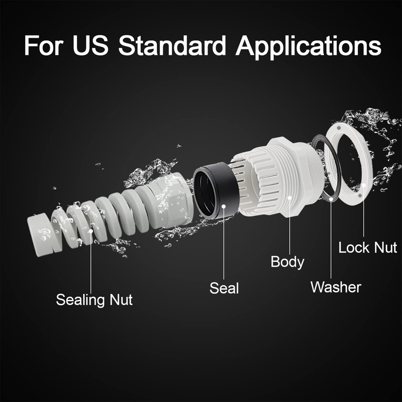 • Cable Range: Fits cable range 0.15in-0.31in(4-8mm); easily pass the cable through the gland then tighten the cap.* Data in detail please check chart in the pic.