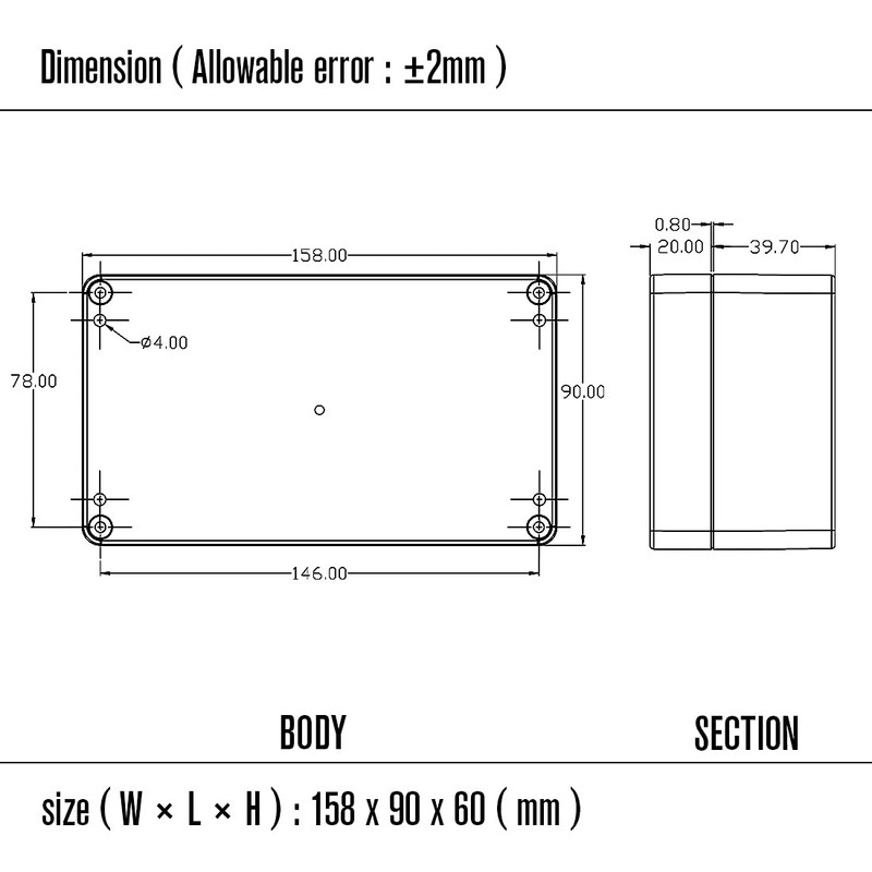 - Outer Size: 6.2 x 3.5 x 2.4inch(158 x 90 x 60mm); Inner Size: 5.9 x 3.3 x 2.1inch(150 x 83 x 53mm)- - *Tips: in order to confirm the detailed installation dimensions, please refer to our detail image, which shows specific internal dimensions of the product. (Allowable Error: 2mm) ,Thickness: 0.12in/3mm