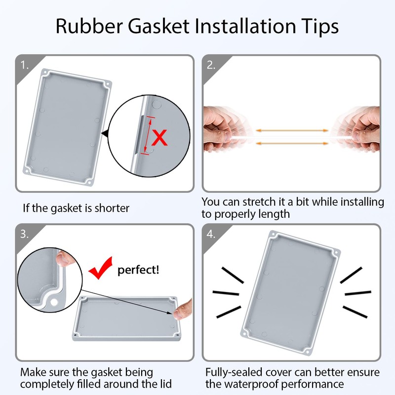 - [WATERPROOF] Electrical box is IP67 waterproof rated, , ensuring that the electrical components inside are safeguarded from moisture, rain, and other external elements. Seals with rubber gasket to offer ideal protection for electronics.