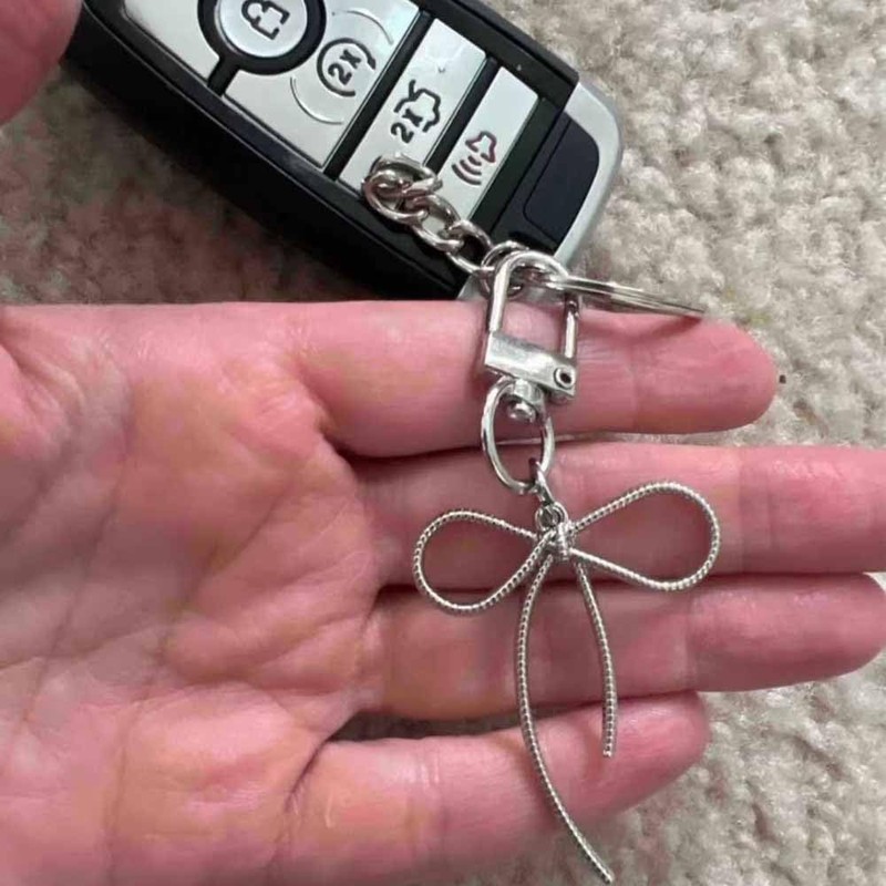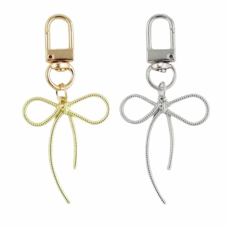 - Our cute gold bow keychain is dainty and stylish, it's a cute accessory for handbags, purses, backpacks, badge reels, wallets, car keys.