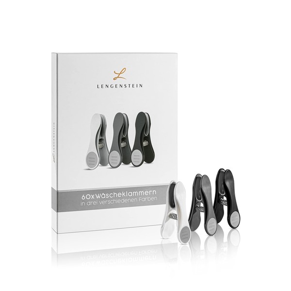 - 60 laundry clips - Lengenstein clothes pegs in timeless and elegant grey, white and black blend into any ambience.