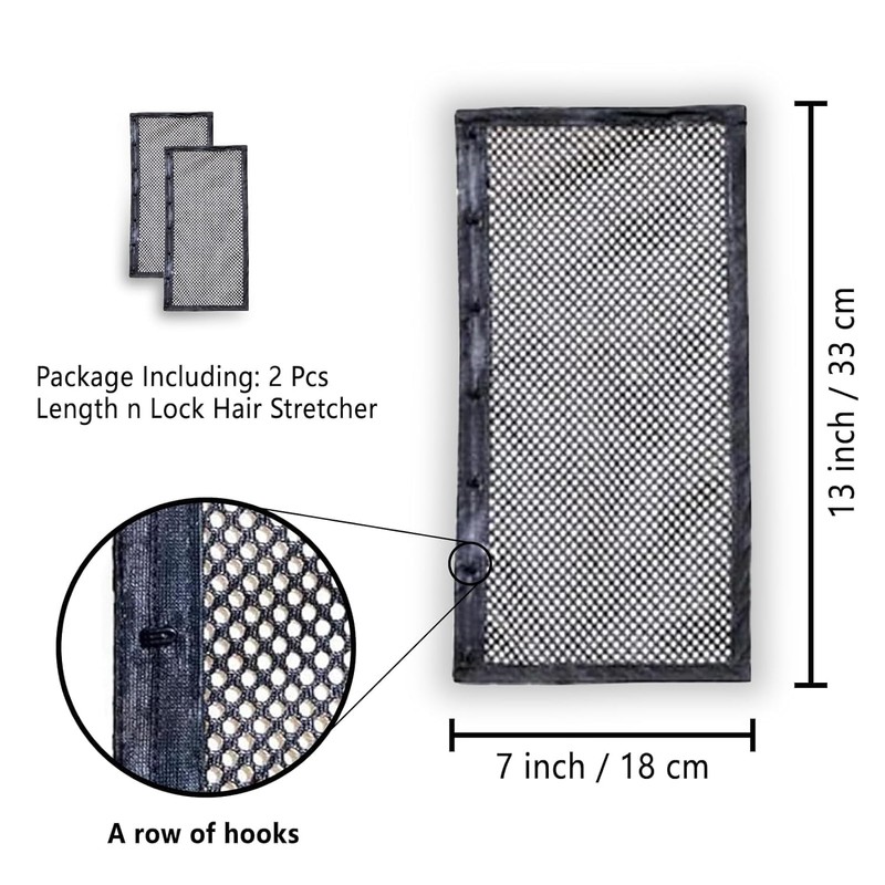 - Adjustable Tightness with Precision Hooks: Featuring a row of precision hooks on one vertical side, our length n lock Hair Stretcher offers adjustable tightness for a personalized fit. Simply latch onto the holes in the mesh and effortlessly customize the stretcher's tightness to meet your specific needs.