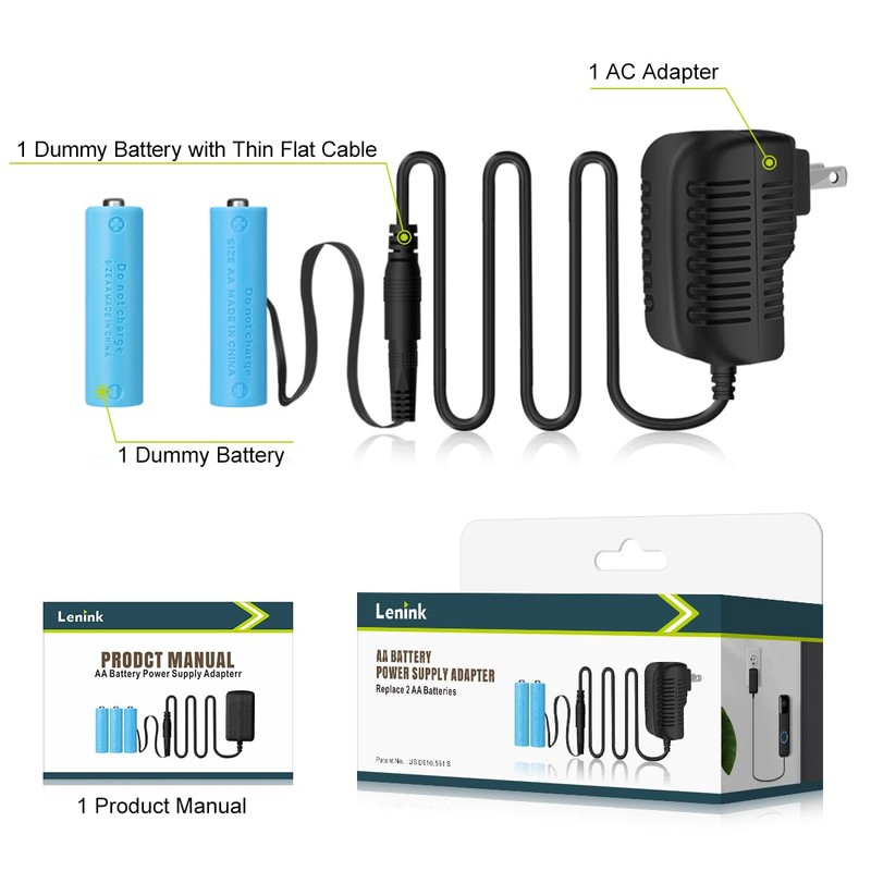 - Package Includes: 1 adapter, 2 AA dummy batteries. NOTE: 1. Do not attempt to charge the AA dummy batteries 2. Unable to power electronic equipment by itself, it needs to be used with the AC to DC wall power adapter. Patent applied.