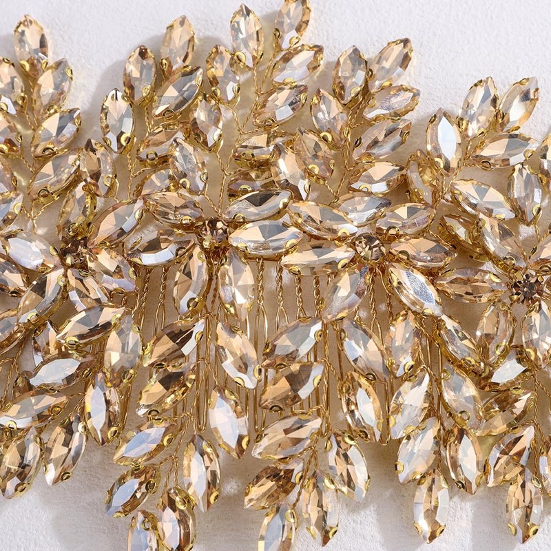 Lenjicons Bridal Rhinestone Hair Comb Large Rhienstone Wedding Headpiece Handmade Crystal Hair Comb for Bride Wedding Hair Accessories for Women (champagne)