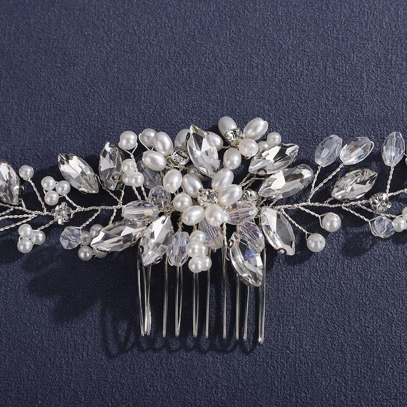 - Size:The beautiful rhinestone pearls flower hair comb is 21cm/8.26 inches in length,6cm/2.36 inches in width.