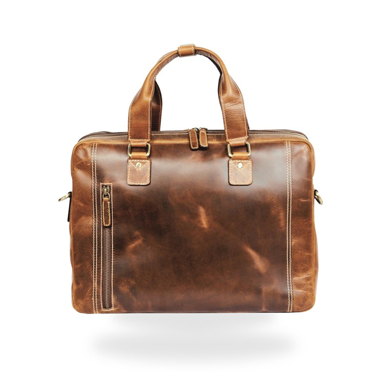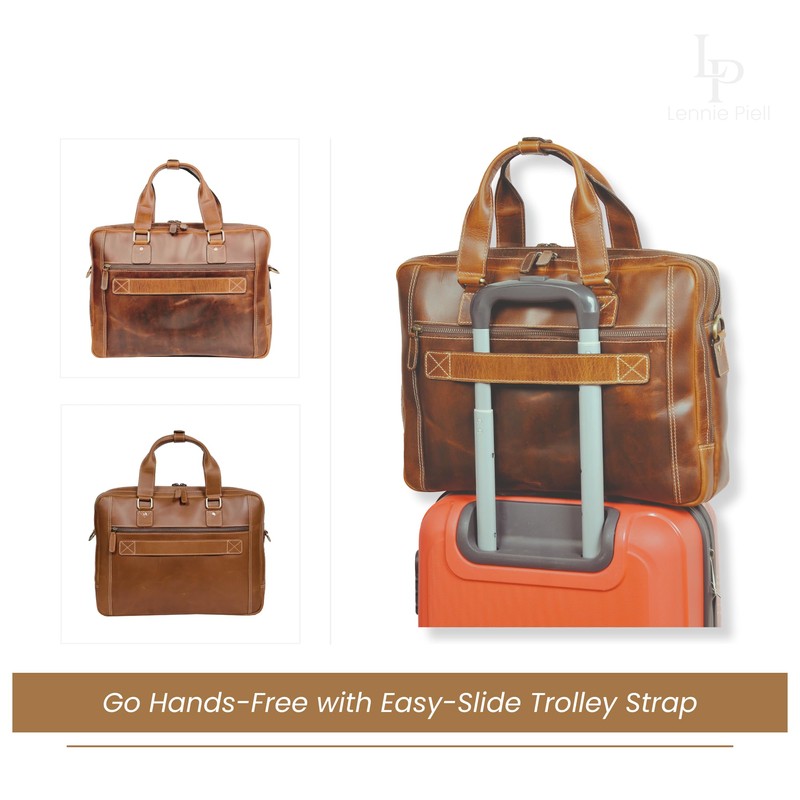 Lennie Piell Full Grain Handmade Leather Briefcase for Men and Women – Twin-Compartment 15.6 Inch Laptop Satchel Messenger Bag for Office, College, Work & Travel (Antique Tan)
