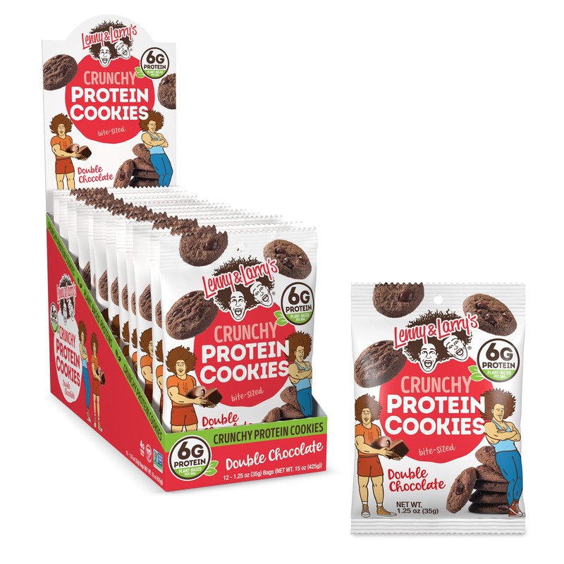 Lenny & Larry's Lenny & Larry's The Complete Crunchy Cookie, Double Chocolate, 6g Plant Protein, Vegan, Non-GMO, 1.25 Ounce Pouch (Pack of 12)