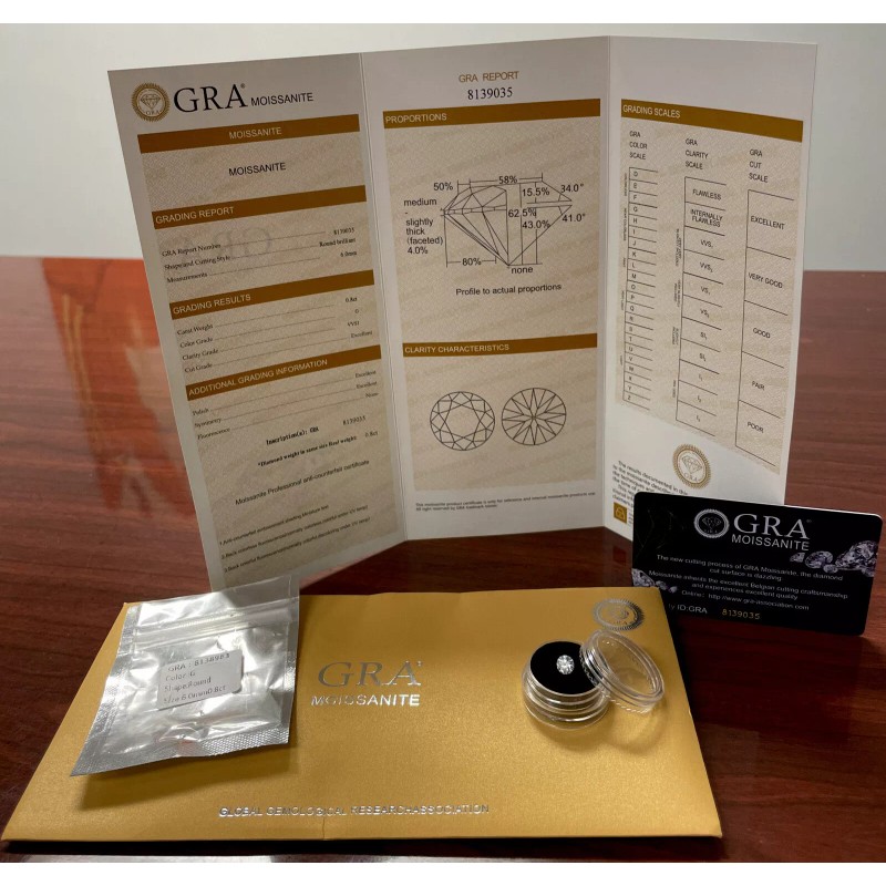 Lenor & Kathie .8ct GRA Certified Real Lab Diamond VVS1 6mm Round Brilliant Cut Grade Excellent