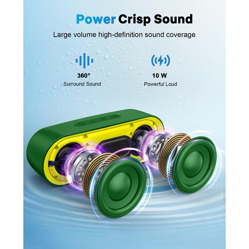 LENRUE Bluetooth Speakers, Waterproof Portable Speakers with TWS, 24 Playtime, Stereo Sound, Wireless for Home Shower Pool Beach Outdoor (Green)