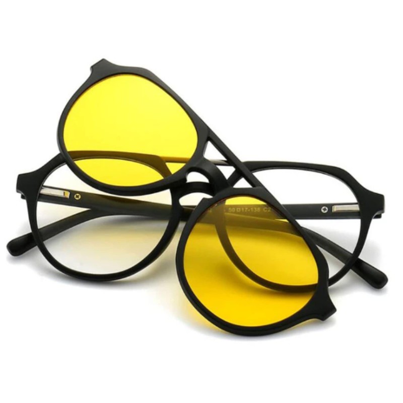 Lentes Con Clip Tipo Piloto Aviador Solar Polarizado Intercambiables 6 en 1 Armazon Para graduación y Clips Magnéticos 2337A
