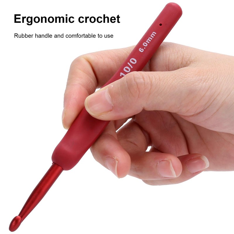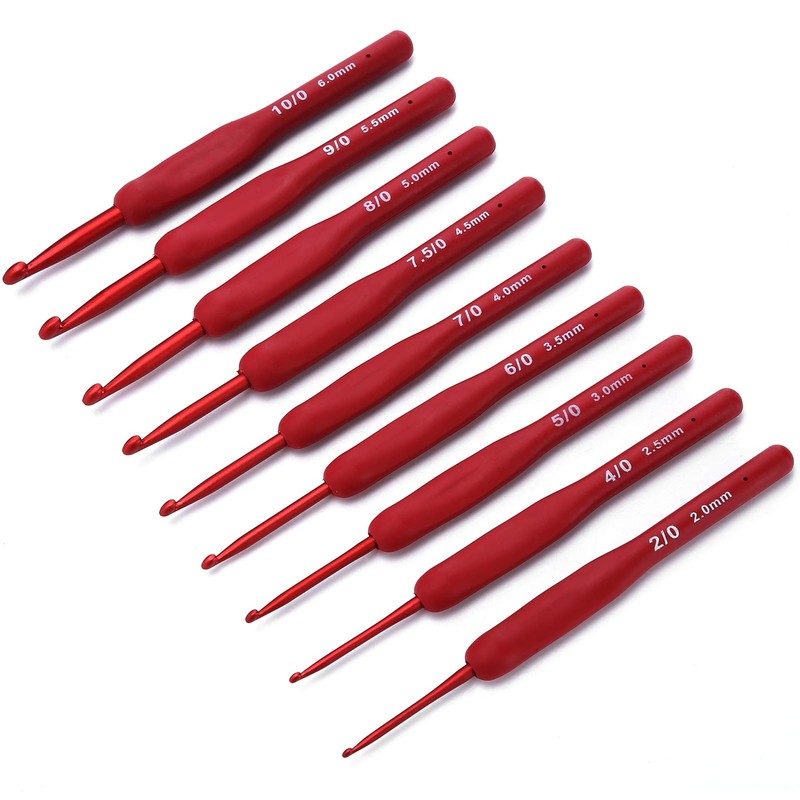 LenTLy 9 Pcs Ergonomic Red Handle Aluminum Crochet Hooks 2.0mm-6.0mm Crochet Hook Set