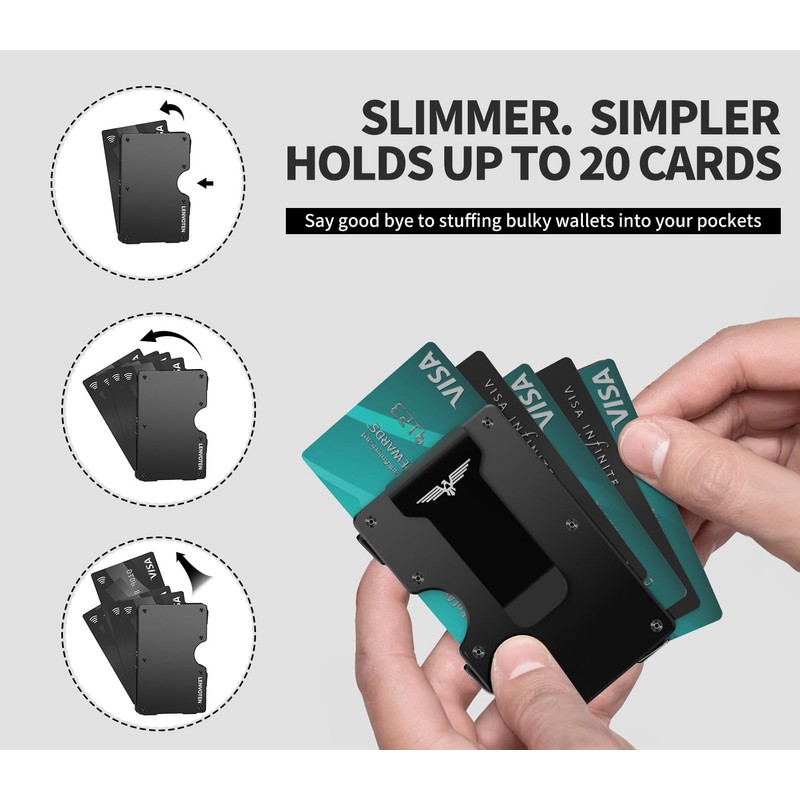 - Metal Wallet: A slim mens money clip wallet, light metal cardholder for men, fashionable and convenient appearance. Flexible webbing greatly improved the card holding capacity, it convenient for card carrier.