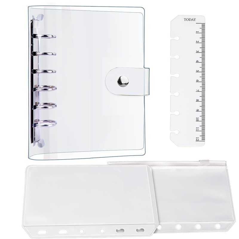 Leobro A7 Transparent Binder, Mini 6 Hole Notebook, Pocket Size, PVC Clear Material, Soft, Includes Bodan, 2 Clear Pockets, Includes Ruler, Notebook, Memo Pad