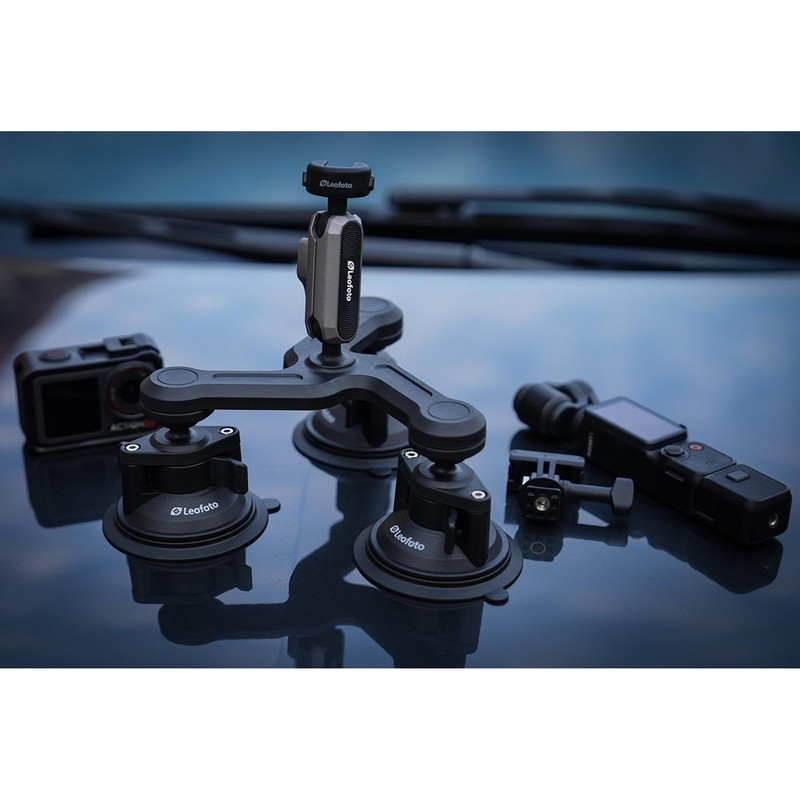 • The Leofoto LAC-05 Triple Suction Cup Sports Camera Mount is built for maximum stability, featuring a three-cup suction design that delivers a rock-solid hold on smooth, non-porous surfaces. For vehicles, glass, or polished metal, this mount keeps your camera steady even in high-motion scenarios.