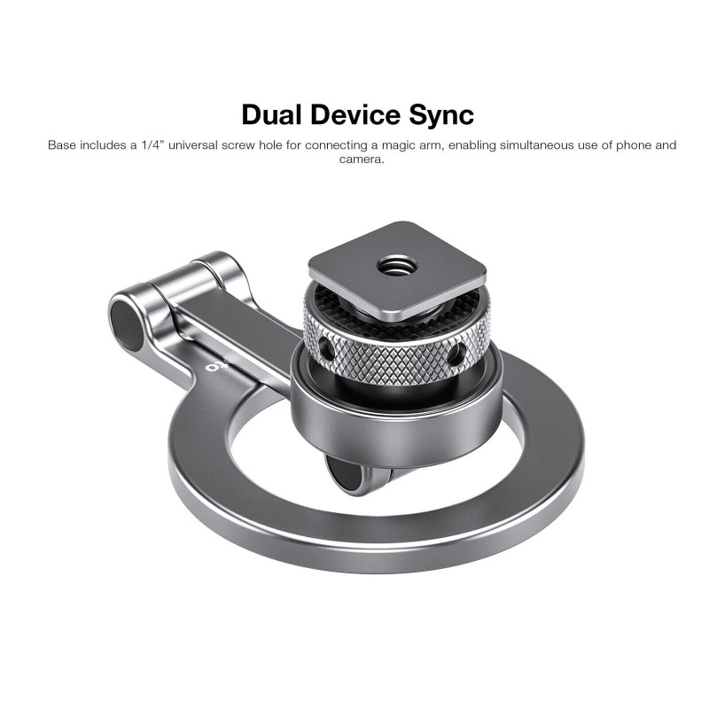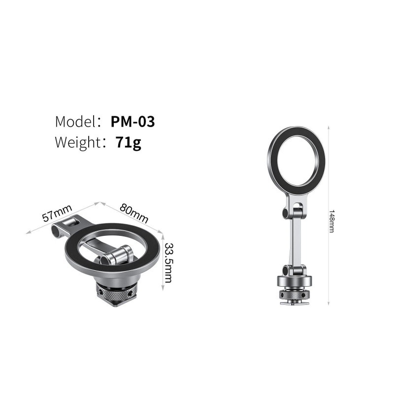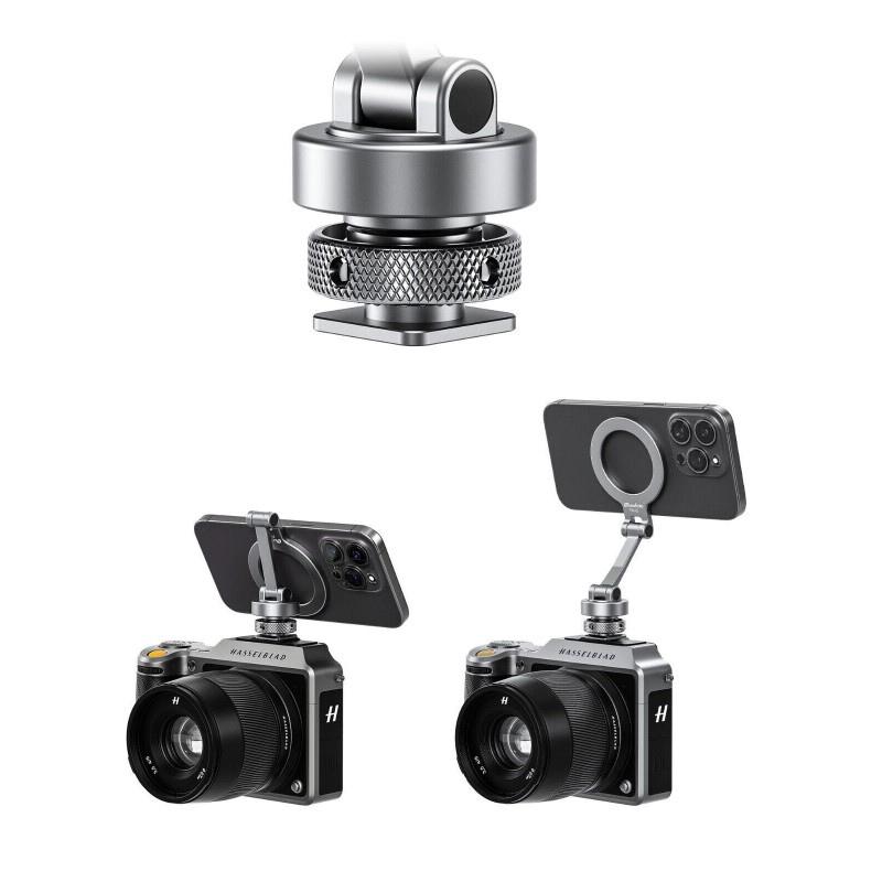 The Leofoto PM-03 Magnetic Phone Mount with Cold Shoe is a versatile and robust solution for mounting your phone to a variety of setups. Its all-metal CNC construction ensures both strength and precision, providing a stable platform to securely hold your phone. The PM-03 features a cold shoe mount, allowing you to easily attach the phone holder to any camera rig or other compatible devices that support cold shoe connections. This makes it ideal for photographers, videographers, or live streamers who need to quickly and securely position their phone within their shooting setup. This magnetic mount is compatible with iPhone 12 and newer models, whether used bare or with a MagSafe-compatible case, as well as phones equipped with a magnetic plate or ring. For the most secure attachment, ensure the magnetic ring on your phone aligns perfectly with the magnetic ring on the mount when attaching the device. |