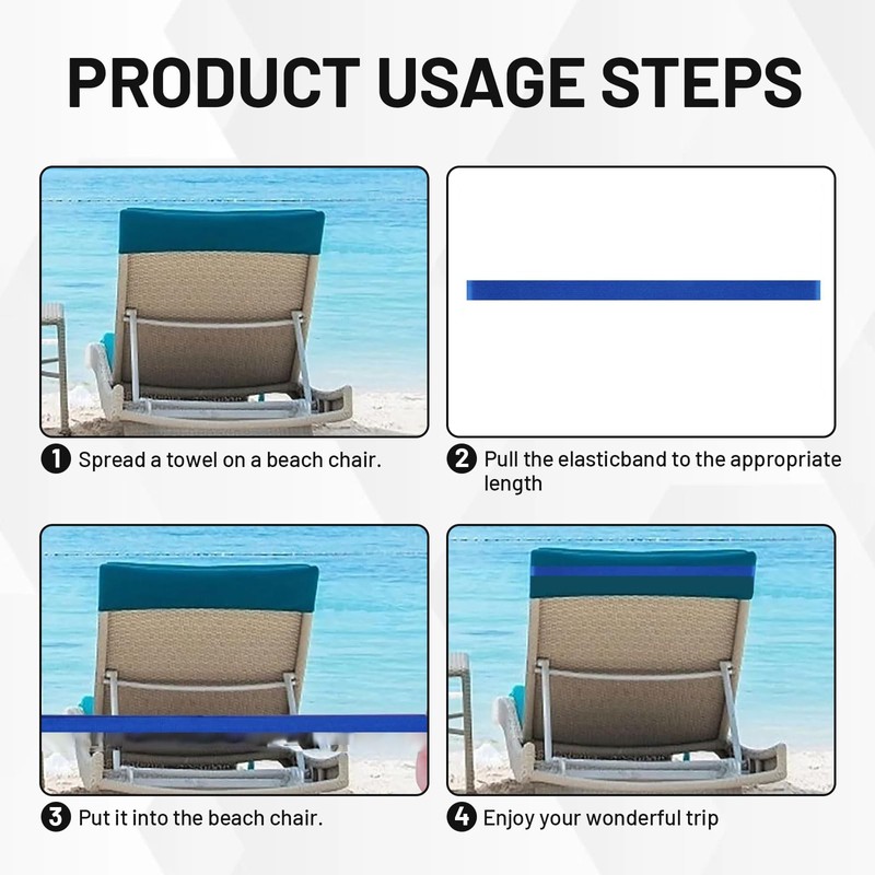 - Elastic Universal: High elastic straps (30x1CM), can be stretched up to 1.2 meters, can firmly fix most beach chairs, sun loungers and pool chairs