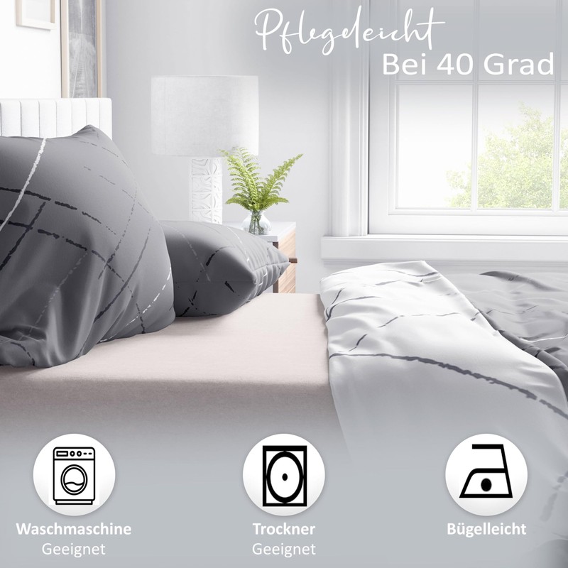 This 4-season reversible bed linen impresses with its soft and easy-care cotton/polyester blend (70% cotton, 30% polyester) and is perfect for everyday use.