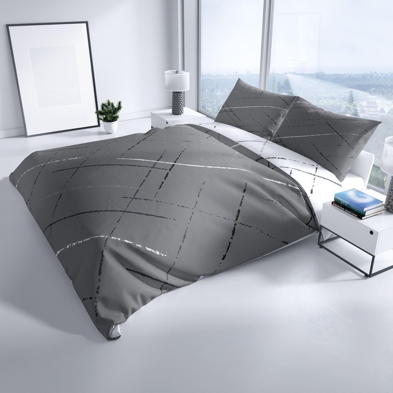 Leonado Vicenti Bed Linen Set 135 x 200 cm Cotton 4-Seasons Stripes Grey Reversible Bed Linen with Zip Pillowcase 80 x 80 cm Breathable