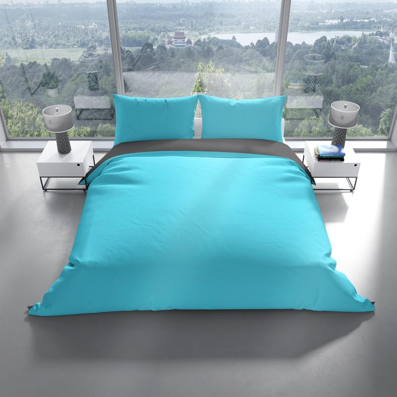 Leonado Vicenti Microfibre Bed Linen 135 x 200 cm Duvet Cover 80 x 80 cm Pillowcase Plain Petrol Silver Reversible Bed Linen Soft and Easy Care with Zip