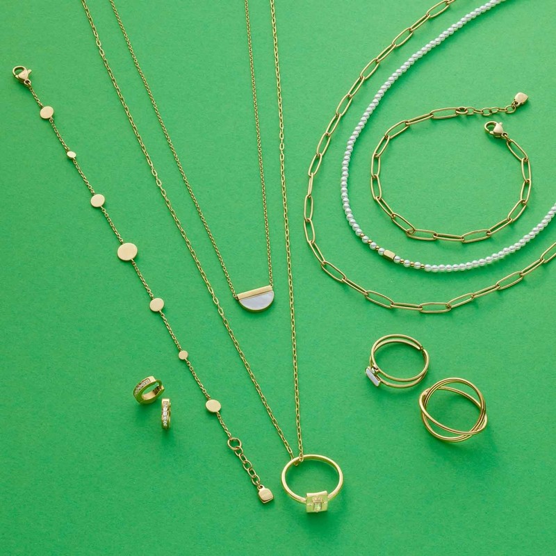 - Material: short narrow chain made of stainless steel with golden ion plating and transverse pendant made of real mother of pearl. The pendant can be freely moved back and forth on the stainless steel chain and offers enough space at the back for engraving.