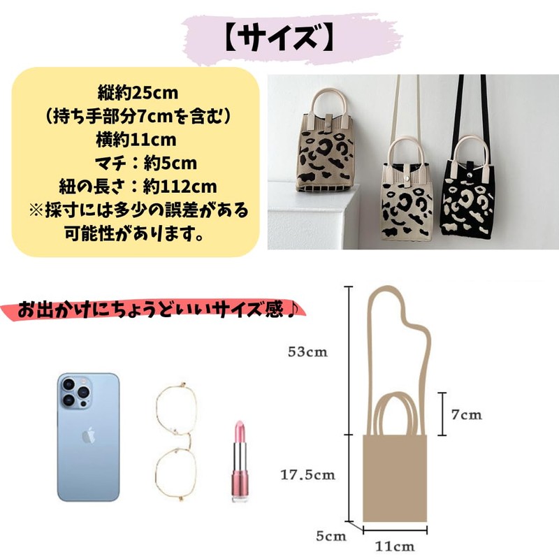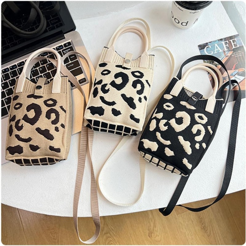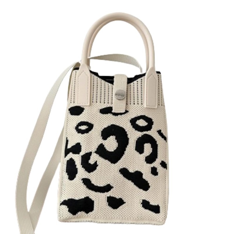 Leonelyric Smartphone Shoulder Knit, Women's, Leopard Print, Pochette, Magnetic Button, Mini Shoulder Bag, Vertical, Diagonal, Smartphone Pouch, Cute, Cute, Durable, Pattern, white