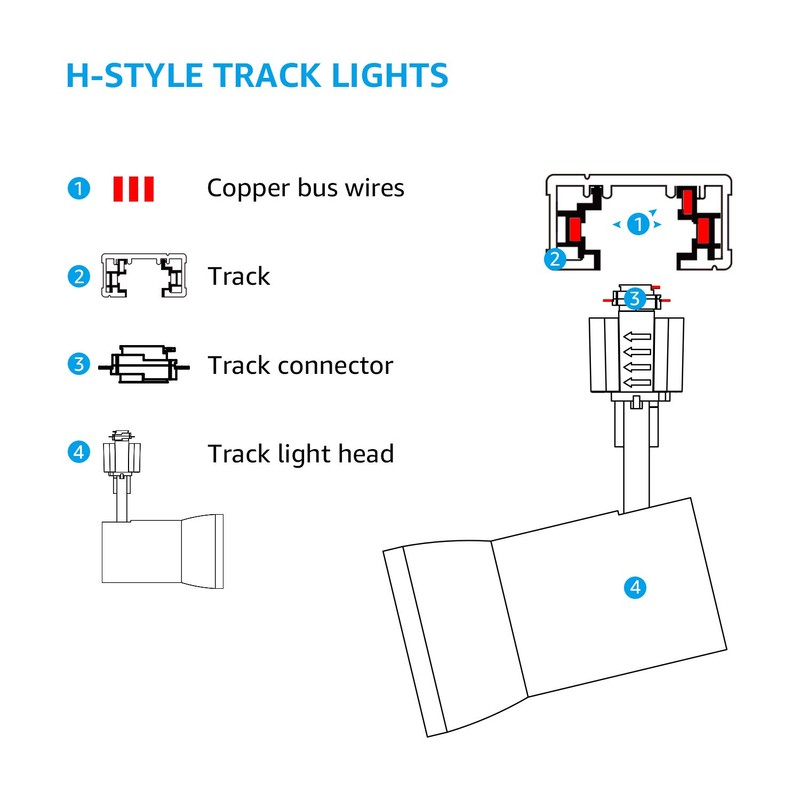 - ✅ Aluminum Housing: Compatible with H type 3-wire-1 circuit track systems, this track light head’s track connector can rotate 360° and the light post can be rotated 90°. This makes it super easy to install. It also possesses great heat dissipation thanks to the exquisite and durable aluminum housing
