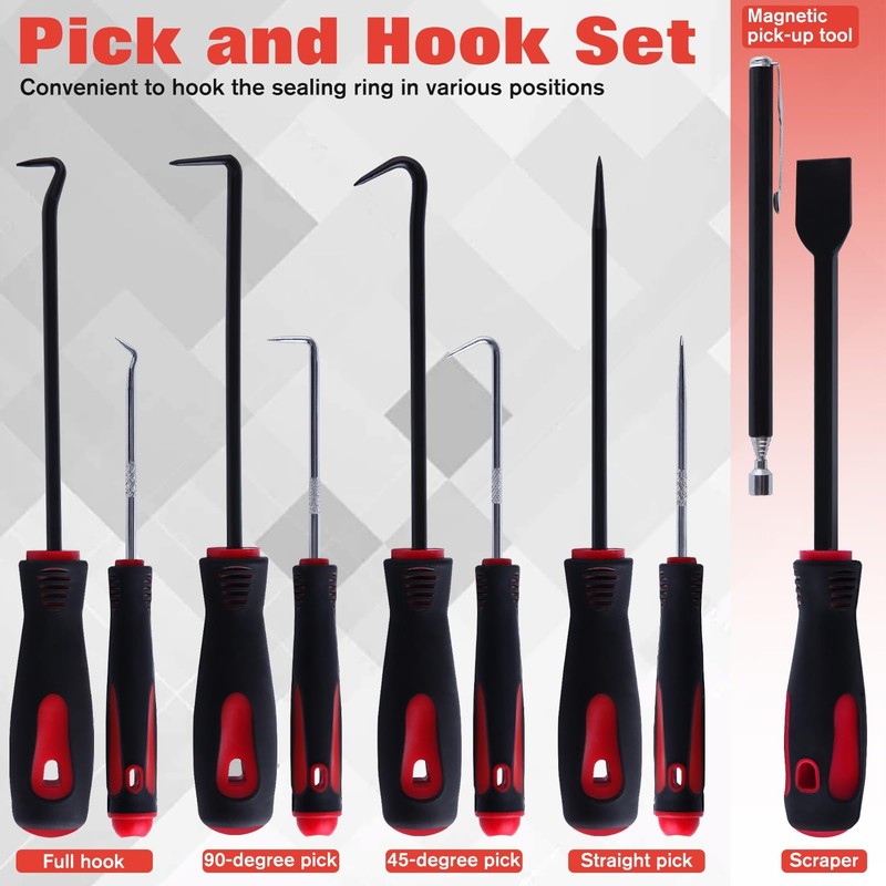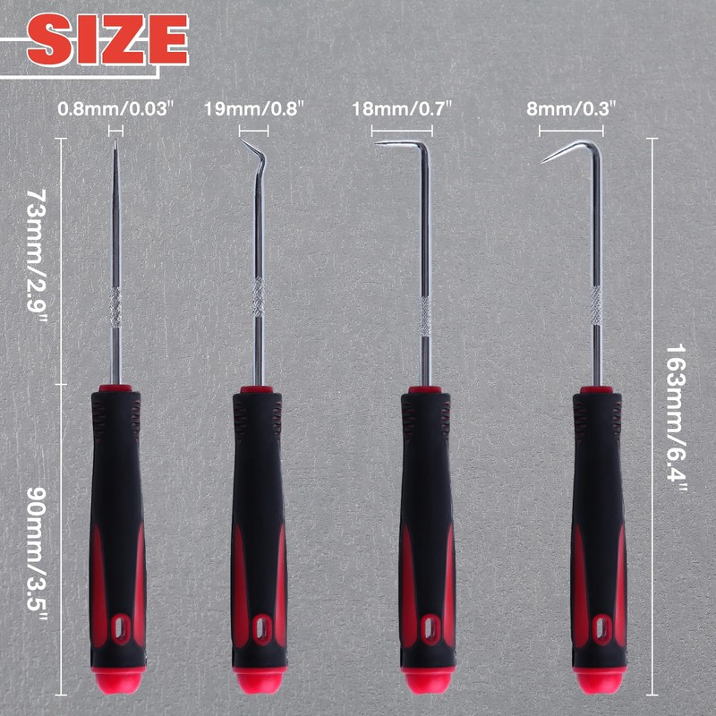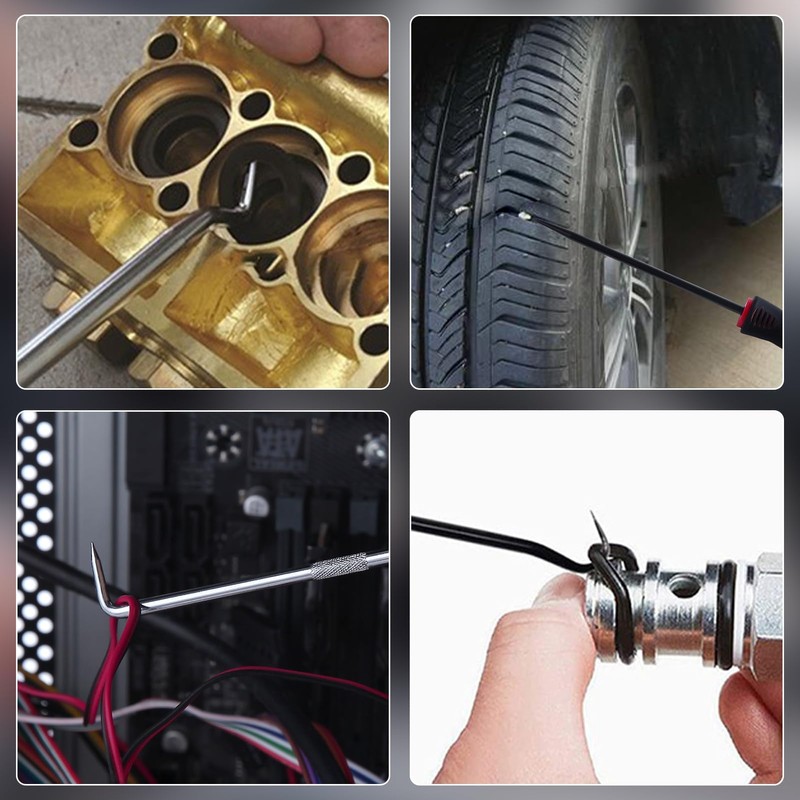 - APPLICATION Pick and hook tool with sharp point, perfect for pulling clips, rings, wires, gaskets, washers and other loose parts that are too small to pick up with your fingers. Ideal for tight spaces.