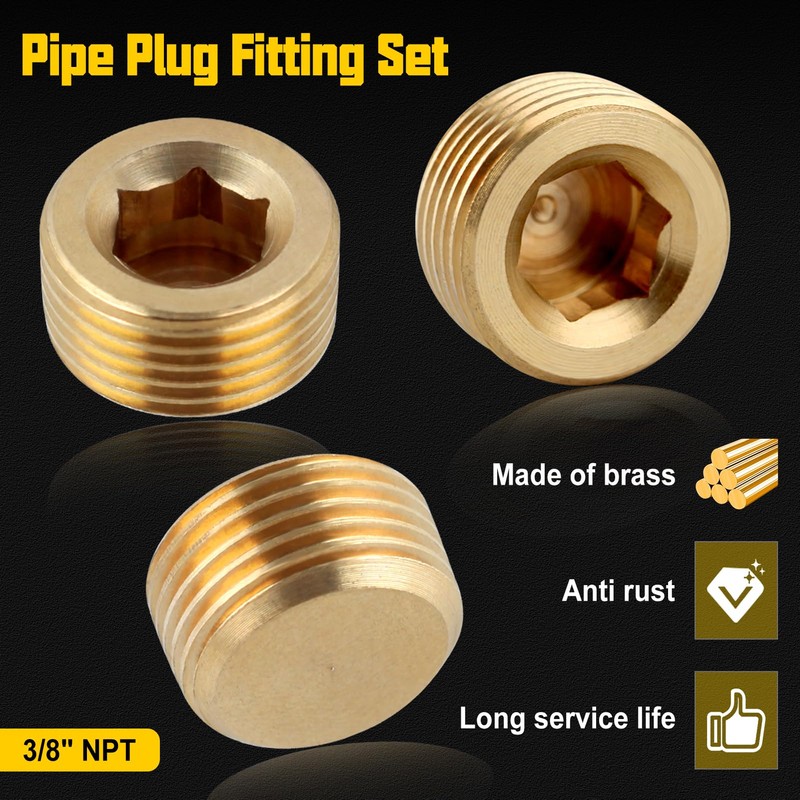 • 【Paket beinhaltet】 10 Stück 3/8 Zoll NPT Messing Rohrstopfen und kommt mit einer Aufbewahrungsbox für einfache Lagerung und Transport