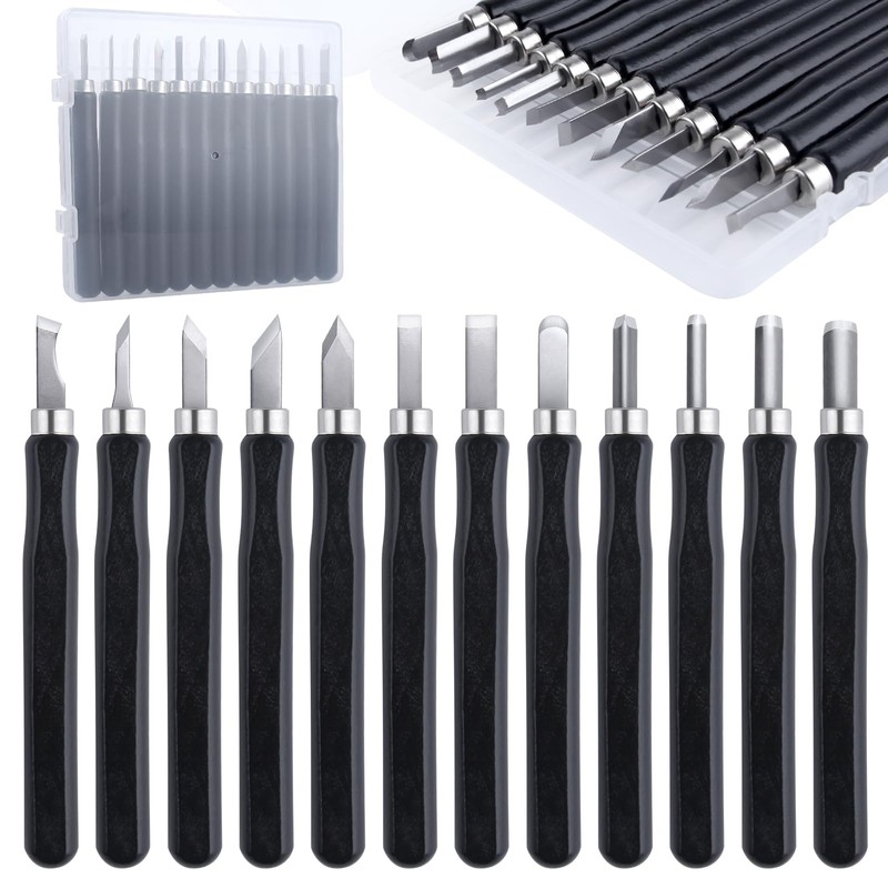 - 【Design】 12 Schnitzmesser in verschiedenen Formen und Größen für viele verschiedene Bedürfnisse, klein und sicher, aber extrem scharf, ermöglicht es Ihnen, präzise Schnitte und komplexe Designs mit Leichtigkeit zu erzielen