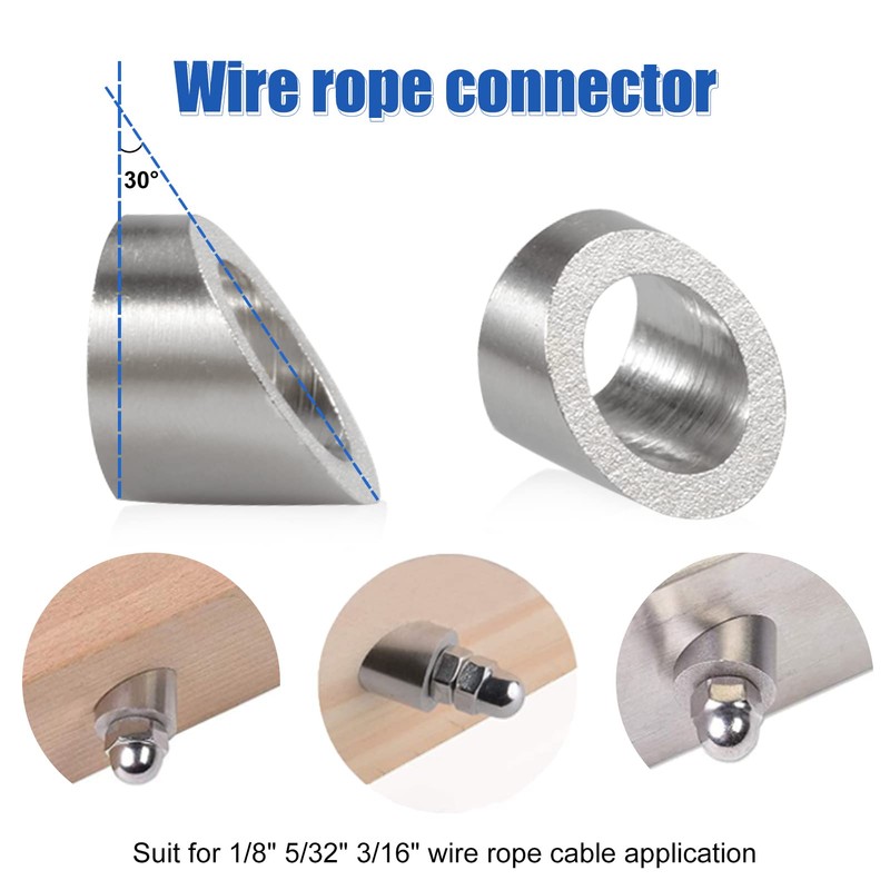 - Design: 30 degree provides a flat load-bearing surface at the wire rope and cable connections, designed for the inclined connection of the stairs fits the surface of the stairs more closely.