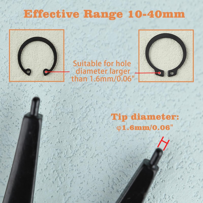- Applications: Suitable for attaching or removing retaining rings located outside of snap ring pliers, bicycles, agricultural machinery, locks, etc. Ideal for repairing automobiles, bicycles, motorcycles, agricultural machinery, plumbing