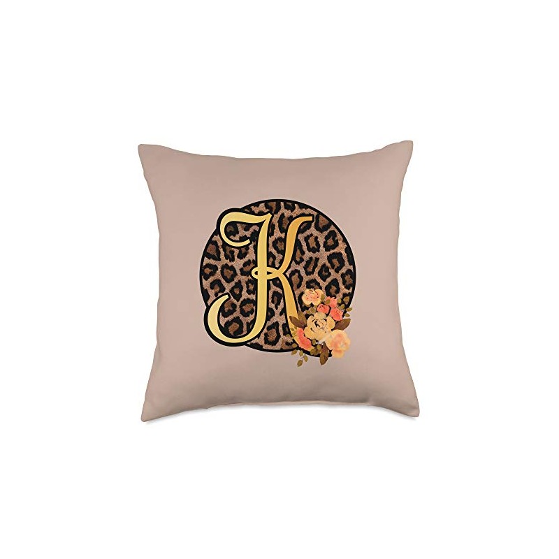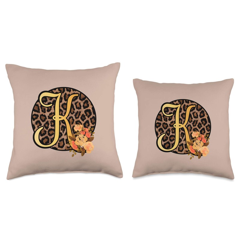 Leopard Animal Print Monogram Letter Gift Leopard Print Floral Monogram K Letter Initial Cheetah Women Throw Pillow, 18x18, Multicolor