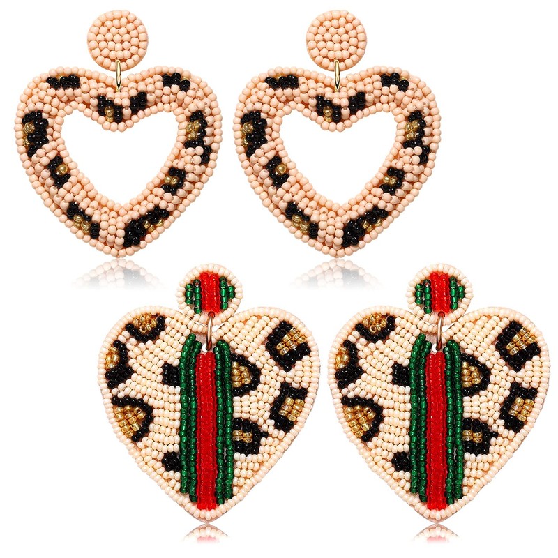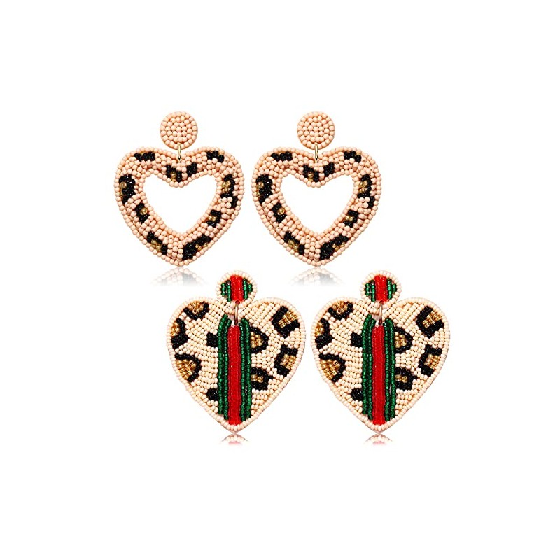- 【Beaded Earrings for Women】: Timeless and classic, our Animal Print designed leopard earrings are the epitome of luxe. Features heart/square/teardrop beadwork with fun Cheetah print patterns, felt covered on the back. Enhance your attire with these beautiful bead earrings to show off your fun trendsetting style