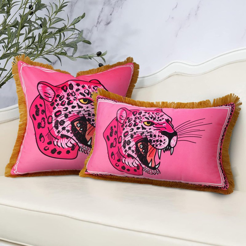- Modern animal print throw pillow cover size: 12 x 20 Inch / 30 x 50cm. Please allow 1~2cm deviation because of handcutting and sewing.Package includes: 1 Pink soft throw pillow cover. (Please Note: PILLOW COVER ONLY, NO CUSHION INSERT)