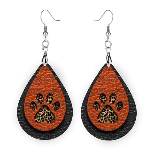 Leopard Orange and Black Paw Print Earrings - Game Day Earrings