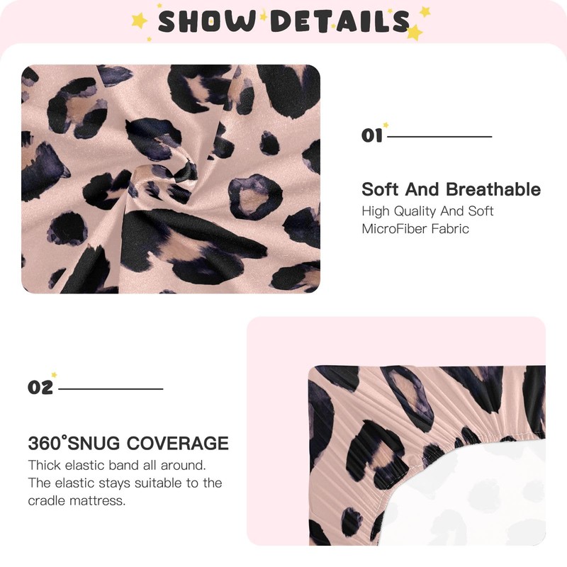 Leopard Print Cheetah Pink Crib Sheets Stretchy Portable Sheets for Baby Toddler Breathable Soft Crib Mattress Sheet for Girls Boys