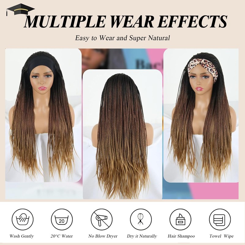 - Box Braid Headband Wig:Braided Headband Wigs;Length: About :30 Inches; Weight:About 350g;Colors:1B#;Scarf Material is Comfortable and Good Air Permeability