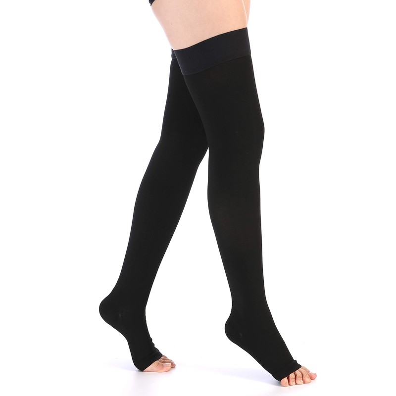 Leotruny Medias de compresión para mujer y hombre, 20-30 mmHg, con puntera abierta, muslo, de alta compresión, C02-negro, S