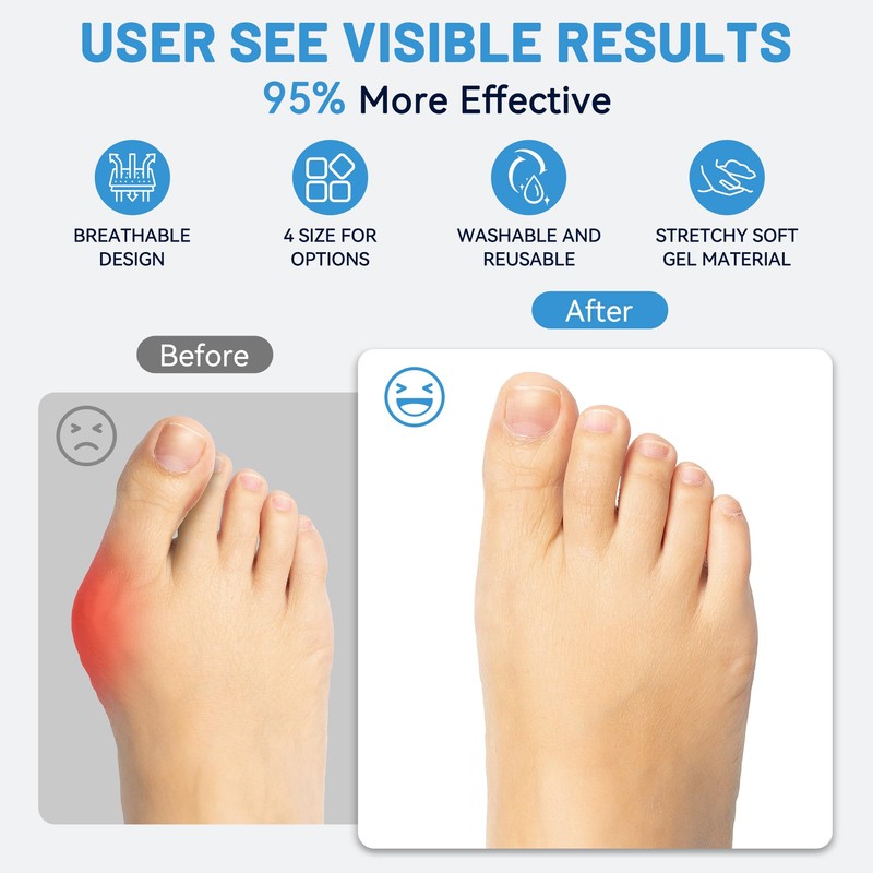 - Enhanced Stability Design-Newly upgraded Big Toe cover,non-slip heel grip with textured inner lining helps maintain position during movement. The widened 3mm gel pads cushion pressure points while walking or standing for extended periods. Flexible straps allow gradual adjustment of toe spacing comfort. The contoured toe loop gently encourages natural positioning without restricting your feet.