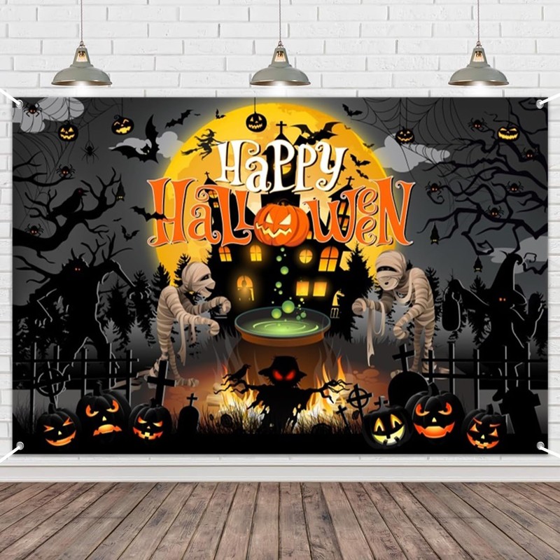 - Leowefowa Party Banner Wide Applications:Our Halloween banners have scary night backgrounds, wicked pumpkins and suitable kids funny Halloween photo backdrop.You can use this in various theme, including scary pumpkins party supplies, zombie pumpkins decorations, trick or treat decorations.Halloween banner is suitable for birthday party, Halloween party, dessert table decoration, Halloween photo shoot.