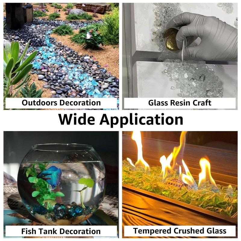 - 【 Endless Possibilities】These high-quality crushed glass are perfect for a wide range of decorative uses,both indoors and outdoors.They are commonly used in fire bowls, flower pots,fish tank decoration, resin art, and as decorative glass for crafts. Their sparkling, colorful appearance also makes it a great choice for vase filler decor. This broken glass offers endless possibilities for DIY color selection, giving your projects a unique and striking finish.