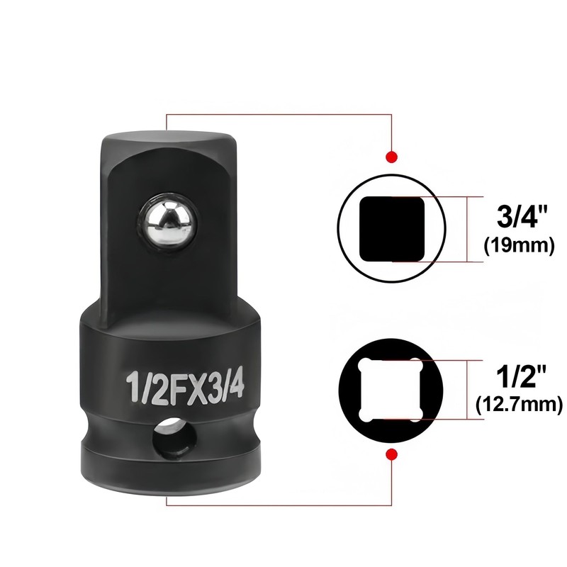 - Size Compatibility: 1/2" Drive (Female) x 3/4" (Male)