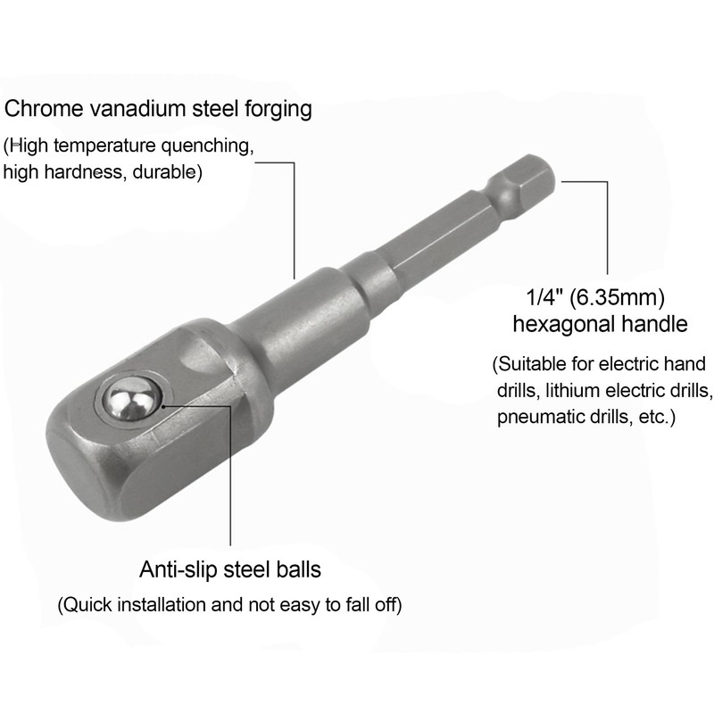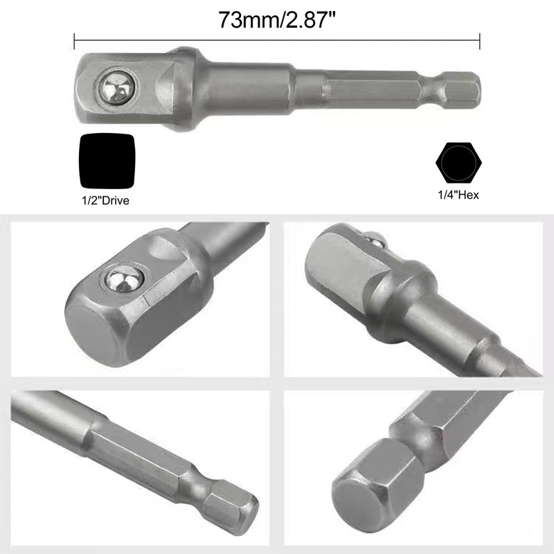 The included hex shank socket adapter provides extra length, allowing you to access hard-to-reach areas with ease. It is precision-machined to fit securely into handheld screwdrivers, drill drivers, or impact wrenches, ensuring a stable connection.