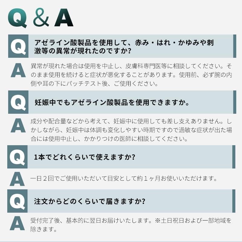 • ・[There are so many reasons why LEPOREM AC Cream is chosen] Azelaic acid is highly concentrated at 15% in our unique manufacturing process. It is cost-effective and can be used generously, so you can easily feel the effects. It is also non-teratogenic, so it can be used safely by pregnant women.